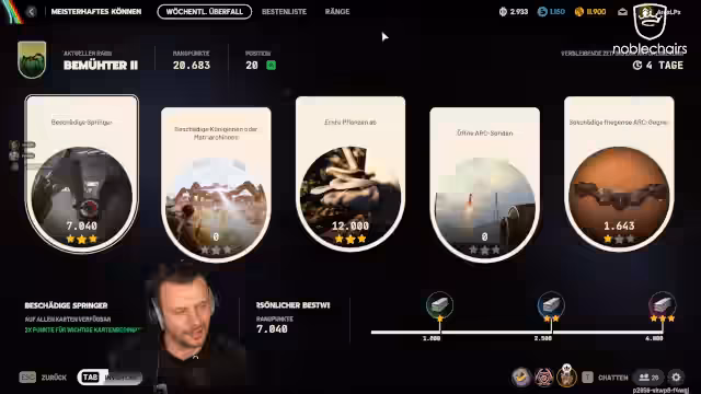 04:20:21Die Gruppe versucht sich an der 'Arc-Sonden'-Mission, stellt aber fest, dass das Sammeln der Sonden bei Tag deutlich schwieriger ist als bei Nacht, da weniger Sonden erscheinen. Trotz der Herausforderungen bleibt die Begeisterung für das Spiel ungebrochen. Der Streamer äußert seine anhaltende Faszination für das Spiel, auch nach fast 400 Stunden Spielzeit, und bedauert, dass es nur in einer Kategorie für Auszeichnungen nominiert ist. Eine Begegnung mit einer Hornet-Drohne und feindlichen Spielern erschwert die Mission zusätzlich, was die Notwendigkeit einer angepassten Strategie unterstreicht. Die Gruppe reflektiert über die geringe Punktzahl, die sie für eine Sonde erhalten hat, und überlegt, ob es sich lohnt, die Mission bei Tag fortzusetzen.