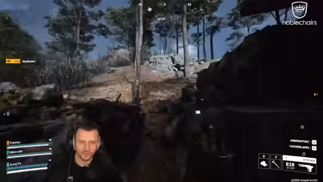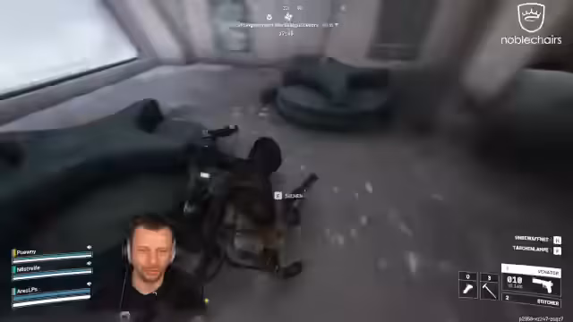 08:00:35Die Spieler koordinierten sich, um Batterien für einen Mechanismus zu sammeln, der eine Tür öffnet, was zu einem Mini-Quest-Endgame führte. Dabei kam es zu verstärkten Feindkontakten, darunter Hornets und Bombardiers, die das Team unter Druck setzten. Es wurde betont, wie wichtig es ist, vorsichtig zu sein, da ein einziger Schuss alle feindlichen Teams anlocken kann. Die Spieler bereiteten sich auf eine weitere Runde vor, bevor ein Steam-Guthaben-Giveaway angekündigt wurde. Es gab auch eine Diskussion über die Anpassung der Spielumgebung im Lager der Spieler, wie zum Beispiel die Lichterkette und das Bett, die sich mit dem Ausbau des Lagers verändern.