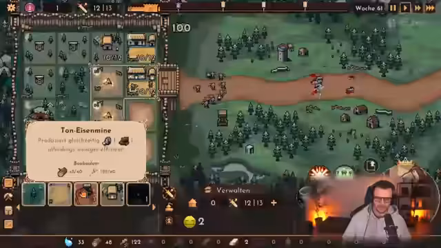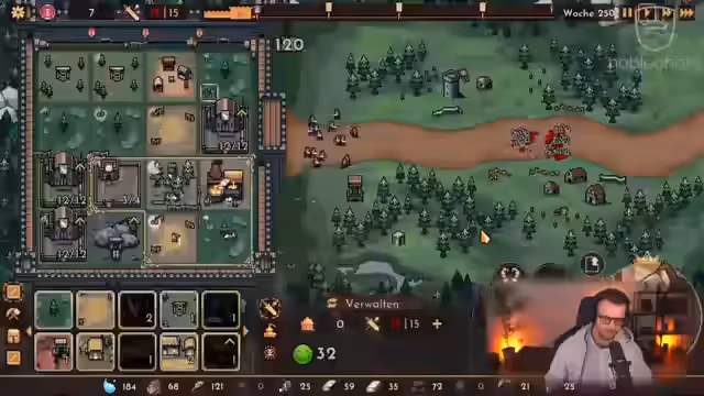 04:37:11Der Streamer stellt sich gegen immer stärkere Gegnerwellen und Bossgegner wie Golems und Mauerknacker. Dabei muss er seine Ressourcen sorgfältig verwalten, um die Produktion von Truppen aufrechtzuerhalten. Er entscheidet sich für die Produktion von Schwertkämpfern und Bogenschützen und nutzt taktische Fähigkeiten, um den Gegnern standhalten zu können. Die Verluste werden schnell kompensiert, um die Produktionsraten nicht zu gefährden.