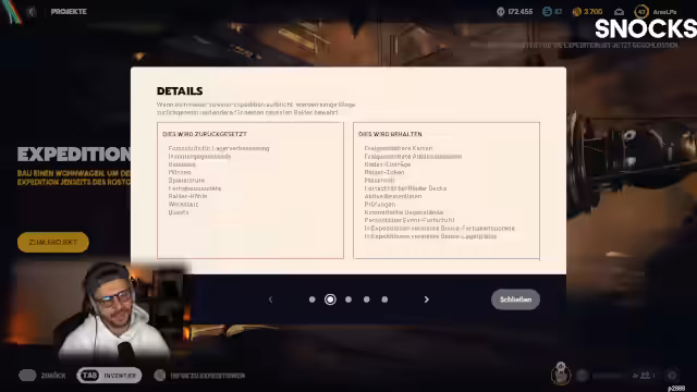 00:27:50Eine Expedition in Arc Raiders bedeutet, dass der Raider den Rossgürtel für immer verlässt. Dies führt zu einem teilweisen Reset des Spielfortschritts, einschließlich Lagerverbesserungen, Inventargegenständen, Bauplänen, Münzen, Spielerstufe, Fertigkeitspunkten, Raiderhöhle, Werkstatt und Quests. Allerdings bleiben freigeschaltete Karten, Arbeitsstationen, Codex-Einträge, Raider-Token, Misscredit, Fortschritte bei Raider-Decks, aktive Bestenlisten, Prüfungen, kosmetische Gegenstände, persönlicher Event-Fortschritt sowie in Expeditionen verdiente Bonus-Fertigkeitspunkte und Lagerplätze erhalten. Nach Abschluss einer Expedition erhält der neue Raider dauerhafte Vorteile bis zum Start der nächsten Expedition, wie erhöhten XP-Zuwachs, zusätzliche Scrappy-Materialien, verbesserte Waffenreparaturen und mehr Lagerplatz. Bonus-Fertigkeitspunkte können basierend auf dem Wert der Gegenstände im Lager bei Abreise verdient werden. Die Vorbereitung einer Expedition ist in fünf Phasen unterteilt, beginnend mit dem Bau des Grundgestells und der Installation der Hauptsysteme, gefolgt vom Rahmenwerk und der Ausrüstung, und endet mit dem Beladen des Wohnwagens mit Vorräten.
