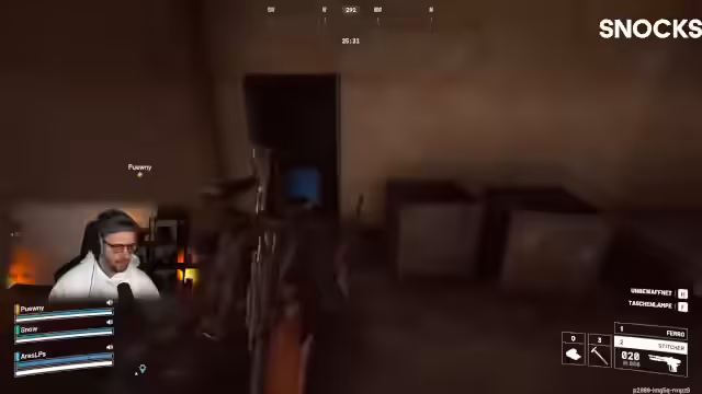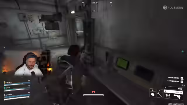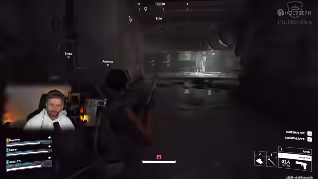 05:41:54Während des Versuchs, aus dem gefährlichen Bereich zu entkommen, kam es zu unerwarteten technischen Problemen, bei denen mehrere Teammitglieder durch die Map fielen und Schwierigkeiten hatten, wieder herauszukommen. Dies führte zu Verwirrung und verzögerte die Flucht erheblich. Inmitten dieser chaotischen Situation wurde die Gruppe von Feinden unter Druck gesetzt, die sich näherten. Die knappe Verfügbarkeit von Heilmitteln, insbesondere Bandagen, verschärfte die Lage zusätzlich. Es wurde überlegt, ob man im Bunker ausharren oder die Flucht fortsetzen sollte, in der Hoffnung, dass die Gegner ebenfalls durch die Map fallen würden. Die Entscheidung fiel jedoch, sich auf den Kampf vorzubereiten und gleichzeitig nach alternativen Ausgängen zu suchen, da die Feinde immer näherkamen und die Gruppe in eine prekäre Lage geriet.