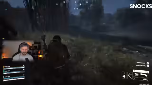 06:21:52Das Team verlässt den Bunker und setzt seine Missionen fort. Sie machen sich auf den Weg zu einem Ort, an dem sie einen Sturm in Damm absolvieren können, um weitere Punkte zu sammeln. Sie müssen vorsichtig agieren, da die Gegend feindlich ist und sie auf andere Spieler treffen könnten. Während der Bewegung halten sie Ausschau nach Loot und stellen sicher, dass alle Teammitglieder für die nächste Aktion bereit sind, was unter Umständen das Heilen und die Verteilung von Ausrüstung umfasst.