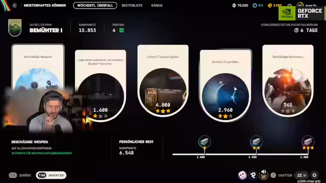 03:12:59Die Gruppe startet ihre erste Runde der Wespenjagd am Damm bei Nacht. Sie rüsten ihre Waffen auf und bereiten sich auf intensive Kämpfe vor. Während der Jagd zeigt sich, dass die Drohnen seit dem Wochenende aggressiver geworden sind, was die Herausforderung erhöht. Trotzdem gelingt es dem Team, erfolgreich Wespen zu jagen und dabei auch andere Gegner wie Hornets und Bastionen zu bekämpfen. Die Kommunikation und Koordination innerhalb des Teams ist entscheidend, um die Ziele zu erreichen und sich gegenseitig zu unterstützen. Nach einer erfolgreichen Runde, in der sie über 6000 Punkte sammeln, entscheiden sie sich für den sofortigen Extrakt, um die gesammelten Punkte zu sichern und nicht zu gierig zu werden. Die erste Runde wird als sehr erfolgreich und unterhaltsam bewertet, was die Motivation für die weiteren Prüfungen steigert.