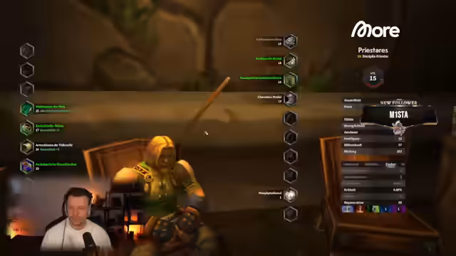 00:15:34Der Fokus liegt auf dem Gameplay in World of Warcraft Classic. Der Streamer steuert einen Schurken, der den Levelaufbau durchführt undquests bearbeitet. Eine zentrale Questlinie dreht sich um die Beschaffung von Zutaten zur Herstellung eines Gegengifts für einen vergifteten NPC. Dies führt zu einer Sammelmission nach Hyazinthenpilzen und Mondblüten-Lilien, wobei der Streamer auch über die Gameplay-Mechaniken und die langsame Levelgeschwindigkeit als Paladin spricht.