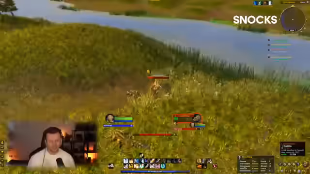 04:12:24Der Streamer startet den Teil mit Erwähnungen von Geschenken und Weihnachtsgrüßen. Er bufft jeden, den er sieht, besonders den Ausdauer-Buff, der für Hardcore-Spieler sehr wichtig ist. Gemeinsam mit den Zuschauern erkundet er das Gebiet um Loch Modan, sammelt Ressourcen wie Fleisch und Beeren und spricht über die strategische Platzierung von Buffs und die Bedeutung des PvP-Modus 'Flex', der voll besetzt ist.