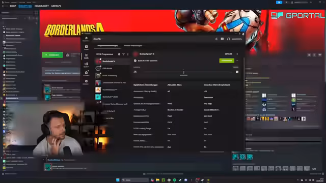 06:45:52Es wird über schlecht optimierte Spiele gesprochen. Es wird FSR gestellt. Es wird sich gewünscht, das Spiel für Playstation 5 geholt zu haben. Es wird über Nvidia Optimierung gesprochen. Es wird überlegt, das Upscaling auszuschalten. Es wird überlegt, die Einstellungen von einer Seite zu nehmen. Es wird über die 5090 gesprochen. Es wird bei Reddit nach 5090 Borderlands 4 Crashes gesucht. Es wird über GeForce Now gesprochen. Es wird über den Grafikkartentreiber gesprochen. Es wird überlegt, den älteren Treiber zu installieren. Es wird über die Shader-Cage Einstellung gesprochen. Es wird überlegt, ob die Karte zu warm wird. Es wird DLSS ausprobiert. Es wird überlegt, ob die Grafikkarte hochrennt. Es wird überlegt, den Fenster-Vollbild-Modus zu versuchen. Es wird FSR als das Unangenehmste empfunden. Es wird überlegt, eine halbe Stunde, Stunde früher zu Mittag zu gehen. Es wird überlegt, einen Tag Pause von dem Spiel einzulegen.