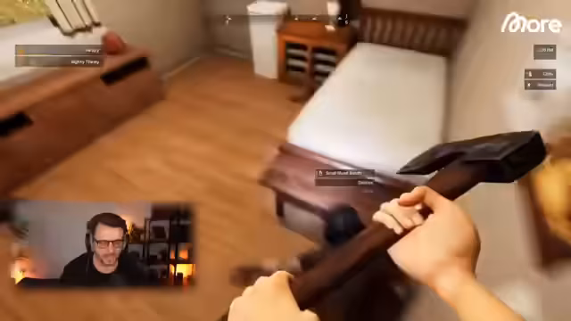 00:41:39Während des Streams treten einige technische und gameplay-bedingte Schwierigkeiten auf. Das Platzieren von Gebäuden wie einem Generator erweist sich als umständlich, da ein Hammer benötigt wird, der erst hergestellt werden muss. Die Steuerung, insbesondere die Kamera, wird als unangenehm beschrieben, da sie bei Bewegung der Figur gegen die gewünschte Blickrichtung arbeitet, was sich aber durch eine Einstellung korrigieren lässt. Trotz dieser Probleme zeigt sich der Streamer beeindruckt von der Immersion, den Animationen und der grafischen Präsentation des Spiels.