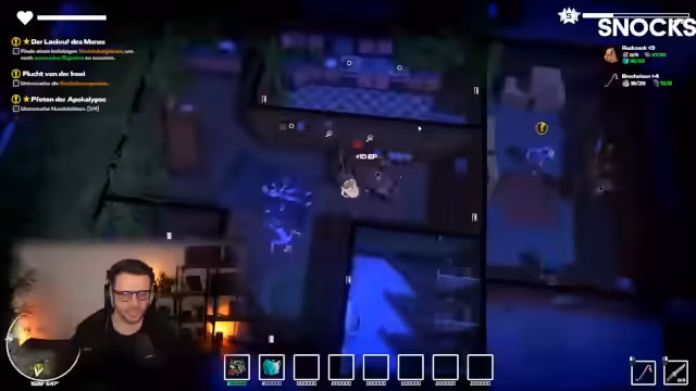 02:42:31Nachdem sie verschiedene Nails gesammelt hat, erkundet die Streamerin ein Haus und stellt fest, dass es von einem Spieler namens Adam bewohnt wird. Es kommt zu einer unangenehmen Konfrontation, bei der sie eine Verletzung erleidet. Eine Infektion droht, aber die Verwendung von Antibiotika und Desinfektion stoppt den fortschreitenden Verlust der Lebenspunkte. Das Ereignis verdeutlicht die ständige Bedrohung und die notwendige Vorsicht im Spiel.