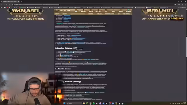 04:23:13Der Streamer analysiert die Fähigkeiten des Shadow Priest Builds im Detail. Er entdeckt, dass er durch 20% des verursachten Schattenschadens geheilt wird, was insbesondere durch Fähigkeiten wie Mind Blast, Shadow Word: Pain und Mind Flay geschieht. Diese passive Heilung ist laut Streamer extrem stark, macht den Charakter aber auch mana-hungrig. Er überlegt, ob er einen Zauberstab mit Schattenschaden benutzen sollte, um von dieser Heilung und von Verwundbarkeits-Stacks zu profitieren, die den Schatten- und Zauberstabschaden erhöhen.
