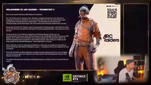 01:30:25Im Stream wird das Spiel Arc Raiders vorgestellt, ein Looter-Shooter, der dem Streamer Spaß macht, obwohl er normalerweise kein PvP-Spieler ist. Er lobt das Spiel und empfiehlt es anderen, insbesondere PvE-Spielern, die auch eine Chance für PvP geben möchten. Das Spiel wird als ein Mix aus verschiedenen Titeln wie The Division und Escape from Tarkov beschrieben, was ihm einen sehr positiven ersten Eindruck vermittelt. Ein Playtest ist aktuell noch verfügbar.