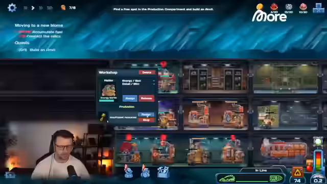 04:04:10Der Spieler hat das Ziel erreicht, die alten Gletscher zu erreichen, und eine neue Ebene namens Frost wird freigeschaltet. Neue Ressourcen wie Frostbium sind verfügbar. Es wird ein 'Anvil' (Amboss) benötigt, der wiederum spezifische Ressourcen wie Planken und Metallplatten verlangt, die in verschiedenen Produktionsräumen hergestellt werden müssen. Die Verwaltung der Arbeiter und ihrer Aufgaben bleibt eine Herausforderung, während neue Events und Händler auftauchen, die zusätzliche Ressourcen erfordern und den Spielfortschritt vorantreiben.