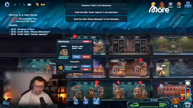 04:12:16Ein zentrales Ziel ist die Herstellung von Relikten, insbesondere von "Relic Face" und "Vector". Die dafür benötigten Teile wie Platten, Kolben und Brustpanzer müssen in mehreren Schritten hergestellt werden. Die Produktion erfordert ein stetiges Management von Ressourcen wie Kupfererz, Gravel und Fuel. Charaktere müssen effizient auf Produktionsstationen verteilt werden, um Engpässe zu vermeiden. Es wird mehrfach das Problem des "Out-of-Fuel"-Zustands erwähnt, was die Productionsketten unterbricht und den Spieler zum schnellen Handeln zwingt.