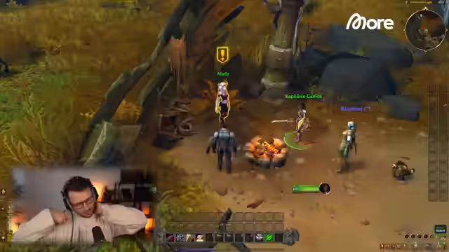 05:48:14Nachdem die erste Quest abgeschlossen ist, wird der Kampf gegen Gegner gezeigt. Streamer verwendet einen Charakter aus dem Retail-World of Warcraft und bekämpft Gegner im inszenierten Szenario. Er sammelt lootet die Gegner und kehmt zum Handelsposten zurück, wobei er Haustier-Schuhe kurz erwähnt. Nachdem eine Quest erfolgreich abgeschlossen ist, wird das Loot-System vorgestellt. Streamer erhält ein blaues Item statt eines grünen, was als sehr positiv bewertet wird. Die Darstellung der L-Erlebnisse, das Level-Up und die Belohnungen wird als benutzerfreundlicher und inszenierter beschrieben als in Classic.