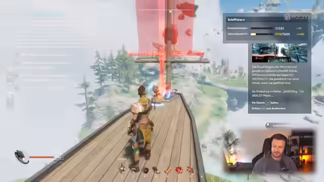 07:51:49 Liebes dir zuzuschauen. Danke, Mann. Also, ich hatte ja auch die Demo gespielt. Ich finde, es fühlt sich schon runder an. Welche Bugs auf Biegen und Brechen eher zur Existenz sind, das weiß ich leider nicht. Ob das ein Bug ist mit dem Segel? I don't know. Auf jeden Fall sieht man ja vorne demolished. Also, ist schon ein bisschen angeschlagen, das Ganze. Unser Segel ist jetzt auch vorne kaputt gegangen. Dann holen wir uns nochmal ein neues. Hier lagere ich jetzt mal ein paar Sachen.