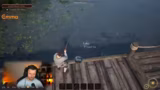 07:04:51Das Spiel wechselt zur Nacht, in der die Taverne von Kreaturen wie Wölfen, Spinnen und Zombies angegriffen wird. Der Streamer kämpft mit Axt und Fackel gegen diese Monster, was ihm aber Lebenspunkte kostet. Er kann erbeutete Gegenstände wie Wolfszähne und Eberfleisch verkaufen oder für Quests nutzen, und muss seine Axt regelmäßig reparieren.
