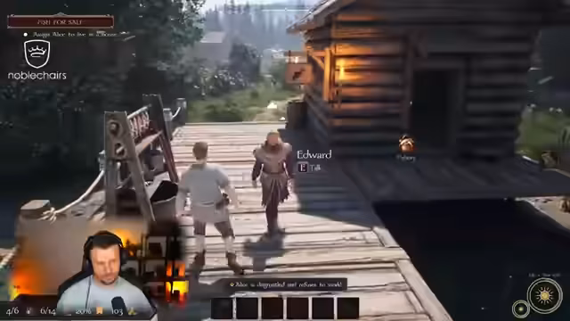 02:21:37Der Streamer gibt Hilfestellung bei der Fischerei-Quest in Noble Legacy. Er erklärt, dass man die Bewertung der Fischerei durch das Platzieren von Dekoration verbessern muss, um die Quest abzuschließen. Zusätzlich kann man durch den Verkauf von Beeren auf dem Markt Gold verdienen und so den Fortschritt vorantreiben. Der Streamer bietet an, gemeinsam die fehlenden Schritte zu finden, falls die Aufgabe unklar ist, und stellt fest, dass das Spiel manchmal etwas Zeit benötigt, um Updates korrekt anzuzeigen.