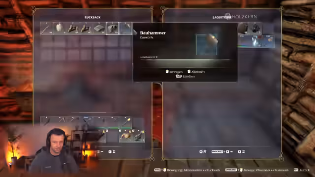 07:11:33Nach der erfolgreichen Mine kehrt der Streamer zurück zum Basislager, um seine Ressourcen zu lagern. Er konzentriert sich auf das Handwerk, insbesondere die Herstellung eines Rucksacks, der mehr Inventarplatz bietet. Zudem werden Waffen wie eine Axt und Dolche aufgewertet, um den Schaden zu erhöhen. Dieser Abschnitt unterstreicht die Bedeutung von Craftingsystem und Ausrüstungsverbesserungen für den Fortschritt im Spiel.