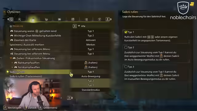 05:08:24Während des Reitens auf dem Mount 'Sakri' werden Probleme mit der Steuerung angesprochen. Der Autopilot, der das Reittier automatisch zur nächsten Ressource führt, wird als sehr nervig beschrieben. Im Menü wird der Bewegungsmodus auf 'Typ 2' umgestellt, um das Problem zu beheben und mehr Kontrolle zu haben. Außerdem wird das Einsammeln von Ressourcen während des Reitens als nicht optimal eingestuft, da die Steuerung unter Umständen behindert wird. Der Streamer muss sich erst an die manuelle Steuerung gewöhnen.