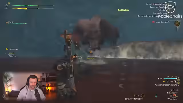 03:58:03Der Streamer probiert neue Waffen in Monster Hunter: Wilds aus und testet zunächst ein schweres Bogengewehr. Er berichtet von Performanceunterschieden bei Spielern, bei ihm selbst laufe das Spiel aber im Benchmark und im Spiel stabil. Nach Unzufriedenheit mit der schweren Büchse wechselt er zur Doppelklinge, die ihm mehr Spaß macht. Große Bedeutung wird auf das Ausweichen und die Waffenhandhabung gelegt. Der Controller wird oft als unpräzise für Zielen (Aiming) bezeichnet, daher wird bei der Doppelklinge auf Maus und Tastatur umgestellt. Das Nachladen und Waffenwechseln wird als langsam und umständlich empfunden.