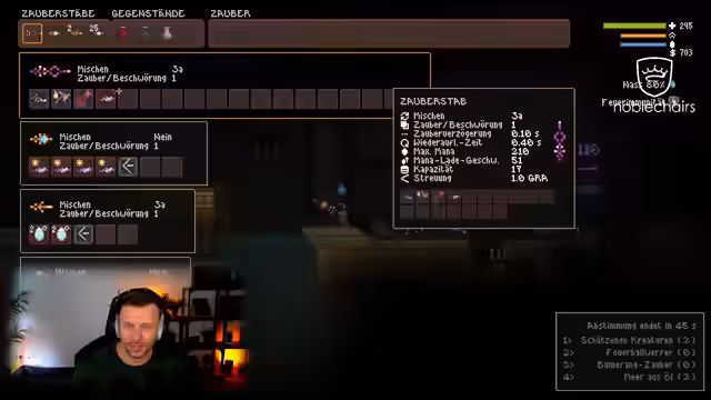 04:24:46Der Streamer analysiert eingehend die gesammelten Zauberstäbe, um deren Effektivität zu bewerten. Konzepte wie 'Mischen', 'Zauberbeschwörung' und 'Mana-Entzug' werden diskutiert. Es wird klar, dass die Anzahl der Zauberbeschwörung bestimmt, wie viele Zauber gleichzeitig gewirkt werden können. Der Streamer testet verschiedene Kombinationen, sucht nach dem optimalen Setup, um maximale Effizienz im Kampf zu erzielen und entscheidet sich für Stäbe, die besser zum Spielstil passen, während andere entfernt werden.