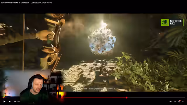 00:13:17Der Streamer betrachtet die Gamescom-Präsentationen und erwähnt, dass viele Shooter gezeigt wurden, die nicht sein Interesse weckten. Er hebt besonders das Spiel "Entschrouded" als persönlichen Highlight hervor. Er feiert das Spiel für seine Schönheit und hat gest einen beeindruckenden Trailer gesehen, der als Early Development Build von Update 7 angekündigt wurde. Das Update namens "Wake of the Water" und der Teaser für die Gamescom 2025 wurden gezeigt.