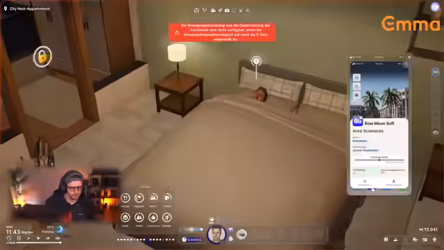 02:10:54Nach Abschluss der Charaktererstellung wird eine Familie mit dem Namen Schmaris erstellt. Der Streamer wählt als Spielwelt 'Bliss Bay', eine fiktive Inselstadt mit Charme, Strand und Freizeitpark. Die Stadt erinnert an Urlaubsziele und bietet sowohl entspanntes Inselleben als auch urbanes Flair. Mit einem Startbudget von 55.000 Einheiten wird ein Apartment für die Familie gekauft. Der Streamer gibt der Figur den Namen Insoi, was symbolisch auf den Geburtstag des Streamers am 24.03.2025 anspielt, und beginnt, die Grundsteuerung des Spiels zu erkunden.
