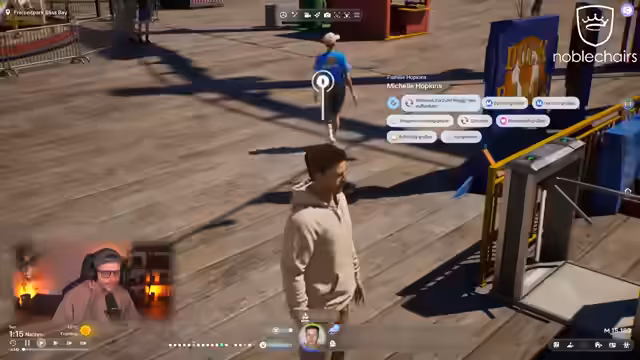 02:28:56Der Streamer besucht mit seiner Spielfigur den Freizeitpark in Bliss Bay. Nachdem die Figur Bedürfnisse wie Hunger gestillt hat, kauft sie Tickets für verschiedene Fahrgeschäfte wie die Achterbahn. Die Simulation der Achterbahnfahrt wird aus einer festen Ego-Perspektive gezeigt und erzeugt eine realistische Reaktion der Figur. Im Park trifft die Figur auf andere NPCs, wie Deborah, und interagiert mit ihnen durch Gespräche. Die KI-gesteuerten Charaktere reagieren auf Dialoge und können Freundschaften aufbauen, was durch den sogenannten 'Freundschaftsbalken' visualisiert wird. Der Streamer gibt die Figur den Auftrag, Deborah auf dem Flohmarkt zu treffen, um die sozialen Aspekte des Spiels weiter zu erforschen.