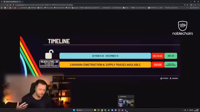 03:29:15Das Konzept der Expedition wird eingeführt, das wie ein Prestige-Modus funktioniert. Spieler ab Stufe 20 können vom 30. Oktober bis zum 14. Dezember Materialien in ihre Expedition investieren. Vom 15. bis 20. Dezember kann der Raider losgeschickt werden, was einen Reset von Lager, Stufe und Fertigkeitspunkten zur Folge hat. Als Belohnung behält man jedoch freigeschaltete Karten, Arbeitsstationen, Codex-Einträge und kosmetische Gegenstände. Der neue Raider erhält permanente Boni, wie erhöhten XP-Zuwachs und zusätzlichen Lagerplatz.