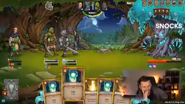 07:32:34Der Stream beginnt mit intensiven Gameplay-Sequenzen in einem kooperativen Kartenspiel. Der Fokus liegt auf der Bewältigung von Monstern, dem Verwalten von Lebenspunkten, Schutzaufbauten und effektivem Schaden. Der Streamer analysiert Karten-Effekte wie 'Blutung' und 'Dornen', die den Kampf beeinflussen, und trifft taktische Entscheidungen, ob er Schaden machen, sich heilen oder blocken soll. Die Situation erfordert ständige Anpassung und Priorisierung der Aktionen, um die Helden am Leben zu halten und den Gegner zu besiegen.