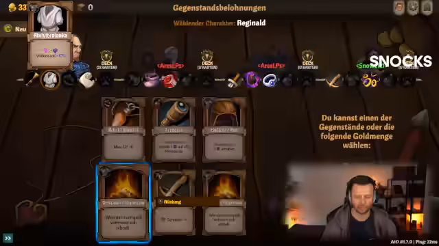 06:48:00Eine neue Phase des Streams betrifft das Aufwerten von Karten. Die Spieler haben die Möglichkeit, Karten durch das Verwenden von Gold oder Kristall-Splittern zu verbessern, um günstiger oder stärker zu werden. Der Streamer wählt eine Verstärkungskarte, die alle Helden schützt und Widerstände erhöht, was als sehr effektiv angesehen wird. Die Gruppe teilt sich ihre Ressourcen und Gold, um gegenseitig Karten aufzuwerten und so den Kampf zu vereinfachen.