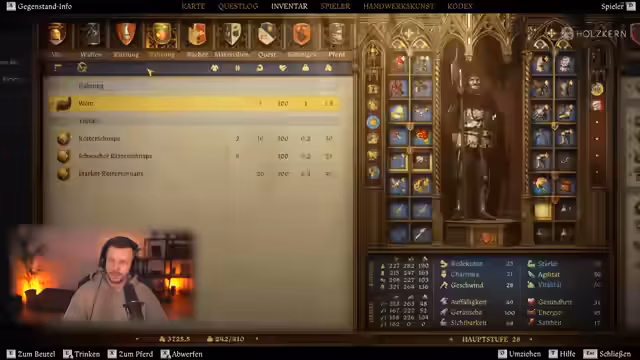 05:52:51Der Streamer klärt die Annahme eines Twitch-Drops für Kingdom Come Deliverance 2, der im Spiel verfügbar ist. Nach dem Anmelden und Verknüpfen des Twitch-Kontos via Google wird der Drop erfolgreich im Spiel eingelöst, was einen Neustart erfordert. Anschließend wird die Rüstung ausgetauscht, ein Kranz mit extrem hohem Charisma-Bonus angelegt, der die Werte auf über 30 anhebt. Die einzigartige Rüstung, die eigens für eine Hochzeit gedacht ist, bietet einen strategischen Vorteil und beeindruckende Boni.