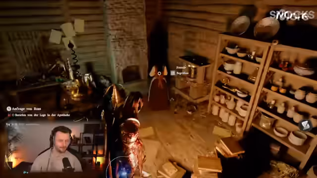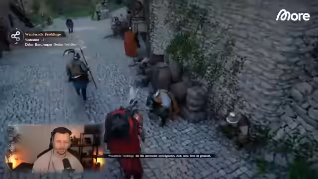 04:54:34Der Stream erkundet eine neue Region, ein Lager wird angegriffen und erfolgreich befreit. Nach dem Sieg über die Gegner wird ausgiebig loot gesammelt, darunter neue Waffen wie ein Schwert und Rüstungsteile. Die Funktionsweise des Lagersystems wird erklärt, das es erlaubt, Gegenstände einzulagern und zu verwalten. Dabei fällt auf, dass der Hund des Streamers beim Sammeln des Loots etwas überfordert ist.