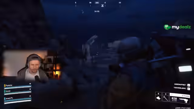 05:17:52Die Gruppe ist bereit, die Gegner im Turm zu pushen, zögert aber aufgrund der unbekannten neuen Waffe, von der die Gegner angeblich zwei besitzen. Es wird vermutet, dass die Gegner Schockminen oben platziert haben und auch auf Spieler schießen, die den Exit nutzen wollen. Die Entscheidung, 20 Minuten lang zu warten, wird getroffen, um die legendäre neue Waffe der Gegner zu erbeuten, die scheinbar doppelt vorhanden ist. Es wird spekuliert, dass die Gegner draußen am Extraction Point ausgeschaltet wurden. Die Möglichkeit, eine Granate hochzuwerfen, um Schockminen auszulösen, wird diskutiert, aber als unwahrscheinlich verworfen, da die Distanz zu groß ist. Die Gruppe befindet sich in einer vorteilhaften PvP-Position, da sie eine bessere Deckung hat als die Gegner oben. Es wird erwähnt, dass die Gegner möglicherweise versuchen könnten, mit einer Seilrutsche vom Turm zu entkommen, was jedoch aufgrund der Höhe und Reichweite als schwierig erachtet wird. Der Streamer gesteht, dass er normalerweise ein „Pusher“ ist und sich an das Campen gewöhnen muss. Es wird festgestellt, dass bisher nur eine Antenne fertiggestellt wurde und das Bunker-Event möglicherweise nicht abgeschlossen wird. Die Gegner oben scheinen ebenfalls nur auf Abfackeln aus zu sein und nicht am Bunker-Event interessiert zu sein. Die Gruppe beschließt, die Camper mit taktischem Campen auszuschalten.