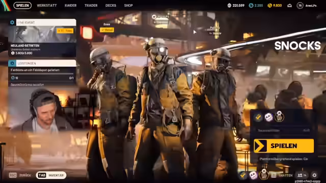 05:00:38Es wird bekannt gegeben, dass das Bunker-Event bereits seit 11:11 Uhr läuft und die Community 140.000 Follower erreicht hat, mit dem Ziel, die 150.000 zu erreichen. Die Teilnehmer werden ermutigt, sich für das Giveaway einzutragen. Anschließend wird die Strategie für den Eintritt in das Bunker-Event besprochen. Da erwartet wird, dass viele starke Gegner teilnehmen, überlegt der Streamer, ob er ein 'Tourenten'-Loadout spielen soll, um flexibel zu sein. Die Wahl fällt auf eine Kombination aus Veneta 4 und einem blauen Schild, während andere Spieler bei Toro und Ferro bleiben, um sowohl Nah- als auch Fernkampf abzudecken. Zusätzliche Ausrüstung wie Elektrominen, Seilrutschen und Spritzen werden mitgenommen, um auf verschiedene Situationen vorbereitet zu sein, insbesondere da die Positionen der Satellitenschüsseln unbekannt sind.