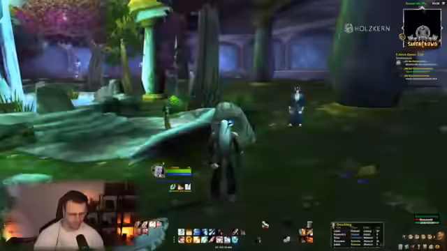 07:48:59Nach den persönlichen Anekdoten kehrt der Streamer zum Spielgeschehen zurück. Er konzentriert sich auf die Erledigung von Quests, wie die Volksmiliz in Westfall und die Jagd auf Defias, um Erfahrung zu sammeln und benötigte Gegenstände zu farmen. Die Vorbereitung für den Besuch der Todesminen (DM) läuft auf Hochtouren. Eine Gruppe wird zusammengestellt, Tank und Heiler sind bereit, und es wird kurz über die taktischen Vorgehensweisen im Dungeon gesprochen.