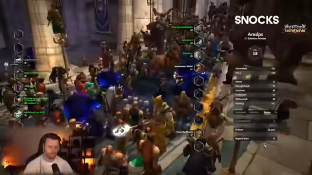 03:15:52Es werden professionelle Spieler aus anderen Spielen wie Path of Exile und League of Legends erwähnt, die stark im WoW-Grind sind. Der Streamer lobt die Zusammenarbeit, da Tode und Wiedereinstiege die gegenseitige Unterstützung fördern. Er betont, dass Krieger und Priester für das späte Spiel wichtig sind, da Damage-Dealer immer verfügbar sind. Es wird auch ein Priester namens Jesse Rocks erwähnt.