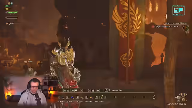02:52:33Die Streamerin spricht mit NPCs und setzt ihre Reise fort. Sie will das ganze Set sehen und erkundet die Rüstung. Sie betrachtet das Ajakhan Set und findet es hübsch. Sie vergleicht verschiedene Sets und deren Aussehen. Sie schaut sich die Doppelklingen an und stellt fest, dass sie durch den Fortschritt in der Story neue freigeschaltet hat. Sie wählt Klingen aus und überlegt, welche sie mitnehmen soll. Sie betrachtet die Knochenklingen und andere Klingen. Sie überlegt, ob sie die Rüstung verbessern soll und betrachtet die Feuerresistenz. Sie analysiert die verschiedenen Set-Boni und aktiven Fähigkeiten, wobei ihr besonders die Schaden- und Regenerationsfähigkeiten gefallen. Sie betrachtet verschiedene Fähigkeiten wie Fokus, Konstitution und Affinität. Sie vergleicht verschiedene Sets und deren Vor- und Nachteile, wobei ihr das Set mit Groll besser gefällt.