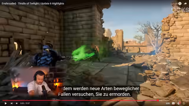05:58:52Der Streamer gibt einen Einblick in das neue Update 6 von Enshrouded und startet einen dedizierten Server über den Partner G-Portal. Das Update bringt neue Inhalte wie den Alchemist, der es ermöglicht, Tränke herzustellen, und neue Kleidungssets. Der Streamer plant, regelmäßig Events auf dem Server zu veranstalten, wie einen geplanten Raid gegen einen Boss, der alle 15 oder 30 Stunden erscheint, um die Community zu stärken.