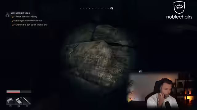 01:44:18Der Streamer setzt seine Mission fort, den Strom wieder einzuschalten und alle Infizierten im Bibliotheksturm zu beseitigen. Er erwägt, eine Story-Quest namens 'Erstes Blut' zu beginnen, und erkundet die Umgebung im Bestien-Modus. Dabei trifft er auf sprintende Gegner und Explosionen. Der Streamer äußert den Bedarf nach neuen Crafting-Materialien und schnelleren Waffen. Er loote einen Raum mit vielen Waffen und begrüßt Zuschauer im Stream. Beim weiteren Erkunden stößt er auf einen gruseligen Moment, als ein Gegner direkt neben ihm steht. Er nimmt Zigaretten an sich und setzt seinen Weg fort, um den Strom wieder einzuschalten. Dabei muss er durch die Stadt und über Dächer sprinten, wobei er von Zuschauern unterstützt wird. Der Streamer setzt einen Wegpunkt und klettert auf Gebäude, um sein Ziel zu erreichen, wobei er auf Schwierigkeiten und Schaden stößt.