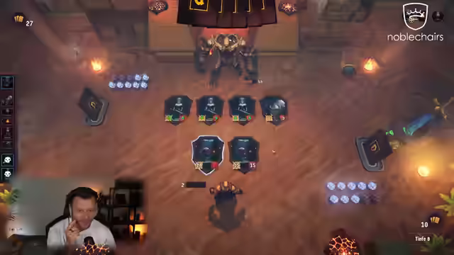 05:33:35Der Streamer beginnt einen neuen Durchgang in Doomspire und wählt einen gefallenen Paladin. Er setzt erneut auf Dorne und Bogenschützen für ein starkes Early-Game. Er wählt einen Kartensatz mit Dorne, um seine Strategie zu optimieren. Der Spieler pusht seine Einheiten und geht früh ins Early Game, wobei er die Verstärkung von Kristallen und Totems nutzt. Er stellt fest, dass der Gegner sich selbst tötet, und verstärkt seine Dorne weiter. Er konzentriert sich auf die Beschwörung von Silberdornen, um seinen Schaden zu maximieren. Er nutzt Kampfschrei und geht dann oben rauf. Er erhält verstümmelnder Schlag für Lichtbringer, was er aber gerade nicht spielt. Er entscheidet sich für Silberdornen und Beschwörung für sein Deck. Er passt seine Strategie an, um Verstümmelungen zu entfernen und die Aura des Winters zu nutzen. Er bemerkt, wie gut sich die Sprossen buffen. Er stellt fest, dass er kurz vor dem Finisher steht und die Leben wieder bekommt.