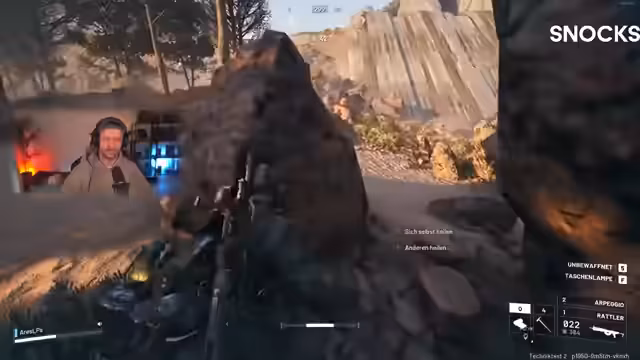 02:16:38Der Streamer befindet sich in einer sehr gefährlichen Position innerhalb des Spiels. Er schildert die angespannte Situation, in der er einen Spieler in einem Gebäude vermutet, dessen genaue Bewegungen er nicht vorhersagen kann. Nachdem der Gegner aus dem Fenster springt, bricht ein intensives Feuergefecht aus. Der Streamer beschreibt seine eigenen Fehler, wie eine voreilige Roll-Aktion und eine schlechte Waffenwahl, die zum Scheitern führen. Trotzdem zeigt er sich fasziniert von der unberechenbaren Dynamik des Spiels, bei der selbst eine Fehlentscheidung zu einem überraschenden Erfolg führen kann und die Konfrontation mit anderen Spielern den Kern des Nervenkitzels ausmacht.