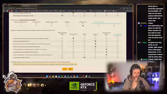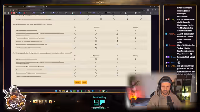 04:09:31Ein wiederkehrendes Thema ist das spielerische Vorgehen, oft ohne festes Ziel, sei es das Rumlaufen, Plündern oder das Bestreiten von PvP-Kämpfen. Es wird eine detaillierte Umfrage zum Spiel diskutiert, in der der Streamer seine Zufriedenheit mit verschiedenen Aspekten wie dem Kampf gegen KI, der Werkstatt, dem Gunplay und der visuellen Attraktivität ausdrückt. Positiv hervorgehoben wird der Dopamin-Kick durch das Finden von Beute, während technische Aspekte wie der Richtungssensitive Sound ebenfalls als sehr gut bewertet werden.