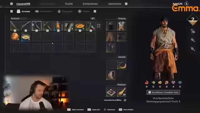01:11:21Der Streamer startet in Windrose eine neue Welt und erlässt zunächst die Einstellungen, wobei er eine normale Kampfschwierigkeit wählt. Das Spiel beginnt mit einem Einstieg in eine Piratengeschichte, in der der Spieler nach einem Schiffsangriff aufwacht. Nach dem Tutorial wird das Basis-Building auf einer einsamen Insel vorgenommen, wobei das neue, kleinere Zelt positiv hervorgehoben wird. Die Steuerung und die Grafik im Vergleich zu früheren Versionen werden als verbessert beschrieben.
