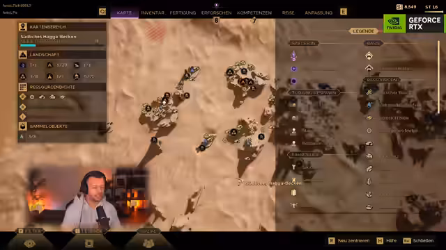 02:06:15Die Spielwelt ist, laut dem Streamer, riesig und wird auf das Dreifache einer GTA 5-Map geschätzt. Alleine der Anfangsbereich dauert zu Fuß etwa viereinhalb Stunden zum Durchqueren. Spieler können sich einer von mehreren Fraktionen, wie den Atreides oder Harkonnen, anschließen. Diese bieten unterschiedliche Schwerpunkte, von PvE-orientierten Aufgaben bis zu PvP-Aktivitäten. Es gibt dedizierte PvP-Zonen, in denen Spieler gegeneinander kämpfen können und im Tod ihre Ausrüstung verlieren.