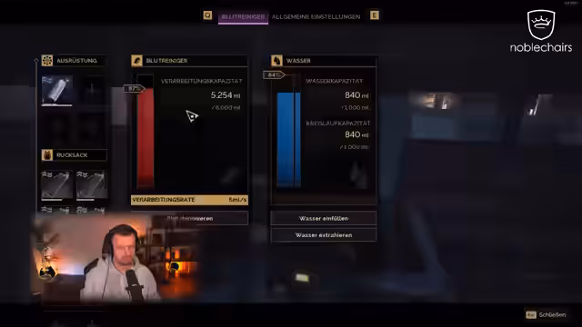 04:55:50Die Aktionen konzentrieren sich intensiv auf das Sammeln und Verwalten von Ressourcen im Spiel. Charaktere müssen regelmäßig Wasser auffrischen, da die Anzeige einen leeren Zustand andeutet, obwohl Flüssigkeit vorhanden ist. Es werden Werkzeuge wie der Recycler zum Zerlegen von Gegenständen genutzt und neue Kleidung hergestellt. Der Aufbau von Ausrüstung und die Organisation von Inventarstandteilen sind zentrale Tätigkeiten, die die Fortschritte im Spiel beeinflussen.
