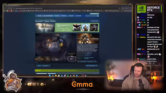 00:22:31Es wird auf den aktuellen Steam-Sale hingewiesen, bei dem einige Spiele extrem stark rabattiert sind. Der Stream stellt "Gauntlet" vor, ein rundenbasiertes Hack'n'Slay-Koopspiel, das für 2 Euro im Angebot steht. Als Aktion für die Community startet der Streamer spontan ein Giveaway für neun Keys von "Gauntlet", das Followern im Discord mit dem Ausdruckzeichen "Giveaway" offensteht.