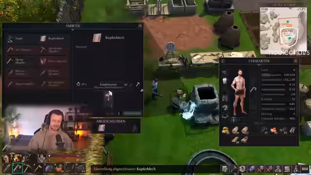 04:02:01Der Fokus liegt auf dem Aufbau einer effizienten Produktionslinie. Es werden Werkzeuge wie Kupferspitzenhacken hergestellt und wichtige Maschinen wie ein Entsafter geplant, um Getränke zur Ausdauerregeneration zu erstellen. Kern dieser Phase ist die Aufwertung des Entdeckertisches, wodurch neue Konstruktionspläne freigeschaltet werden, um in den Bereichen Alchemie, Kochkunst und Eisenverarbeitung Fortschritte zu machen.