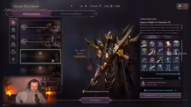13:17:25Nach Inventarproblemen wird der Plan gefasst, einen Dungeon zu starten. Der Streamer entscheidet sich für einen Koop-Dungeon, den 'Todesabgrund', und nutzt die Gruppensuche-Funktion. Nach der Auswahl des Dungeons und der Rollenauswahl startet die Suche nach einer Gruppe. Ein wichtiger Punkt ist die Diskussion über die verschiedenen Dungeon-Schwierigkeitsgrade, wobei man sich für einen angemessenen Levelbereich entscheidet, um eine passende Herausforderung zu finden. Die Suche nach einem Heiler wird als zügig beschrieben, da diese Rolle sehr beliebt ist.