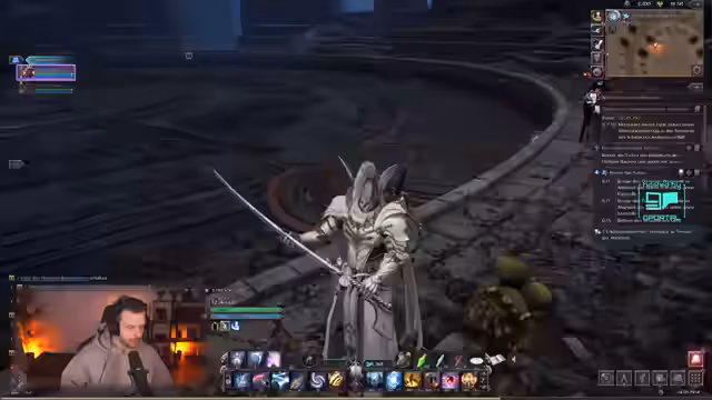 12:11:28Im Stream wird intensiv über die Spielmechaniken und Charakterfortschritte gesprochen. Es geht um die Attribute wie Mana, Trefferchance und Waffenbeherrschung, die für den Erfolg entscheidend sind. Der Streamer zeigt seinen Inventar, der Erze, Aufwertungspunkte und Meilensteinartefakte enthält. Er markiert Gegner, um Angriffe zu planen, und wechselt die Waffenausrüstung von Schwert und Schild zu Dolchen, um mehr Schaden zu erzielen. Dabei erwähnt er die Möglichkeit, die Punkte frei zu verteilen und Builds neu zu konfigurieren.