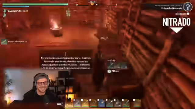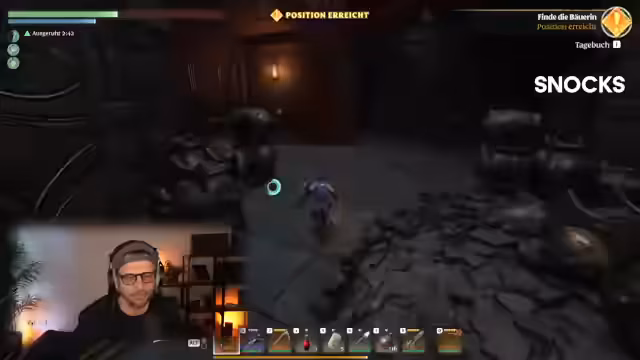 01:45:03Der Streamer und seine Gruppe betreten ihre erste Krypta, einen instanzierten Dungeon, der neue Herausforderungen bietet. Sie kämpfen gegen stärkere Gegner und müssen ihre Taktiken anpassen, besonders weil das Regenwasser die Ausdauer reduziert. Im Dungeon finden sie Truhen mit Beute, einschließlich einer goldenen Truhe mit mäßig wertvollen Gegenständen. Der Streamer zeigt die neuen Mechaniken des Dungeons, wie Rätsel und besondere Umgebungsinteraktionen, die das Erlebnis abwechslungsreicher machen.